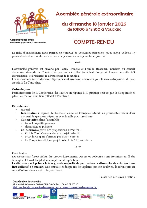 La Coopérative des savoirs est une association créée en 2012. Son objet est l’animation de l’université populaire et buissonnière en Nivernais Morvan. Elle s’inscrit dans une visée d’éducation populaire affirmant l’importance et la possibilité d’apprendre à tout âge et partout. Elle est agréée Espace de Vie Sociale depuis 2017.